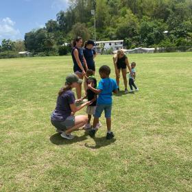 J’ai principalement donné des cours de natation au club de natation de l’île. Je m’entendais très bien avec l’entraîneur de natation Evelyn et même si je n’avais pas beaucoup d’expérience dans l’enseignement de la natation, j’ai vite compris. J’ai vraiment aimé travailler au club de natation. Je suis aussi allée donner des cours de rugby et de netball. De plus, nous avons également donné des cours de sport dans des écoles primaires avec le groupe de bénévoles.